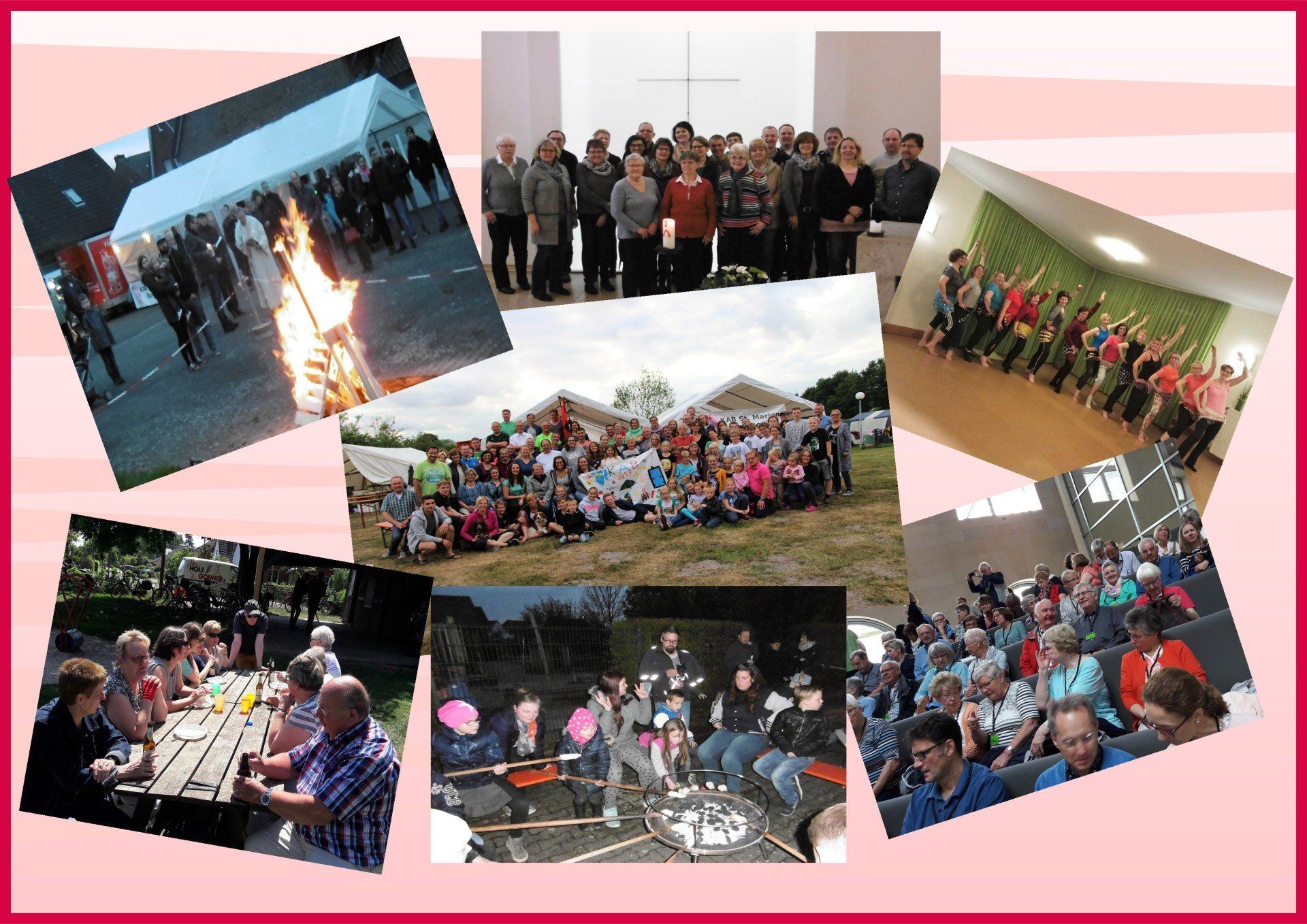 Es finden immer wieder unterschiedliche Veranstaltungen statt. Einige davon gehören zur "Tradition", die dann jedes Jahr stattfinden, wie z.B. unser Familienzeltlager. Außerdem gibt es Veranstaltungen, die regelmäßig wöchentlich oder monatlich stattffinden. Nähere Informationen dazu erfahrt Ihr unter "Termine".